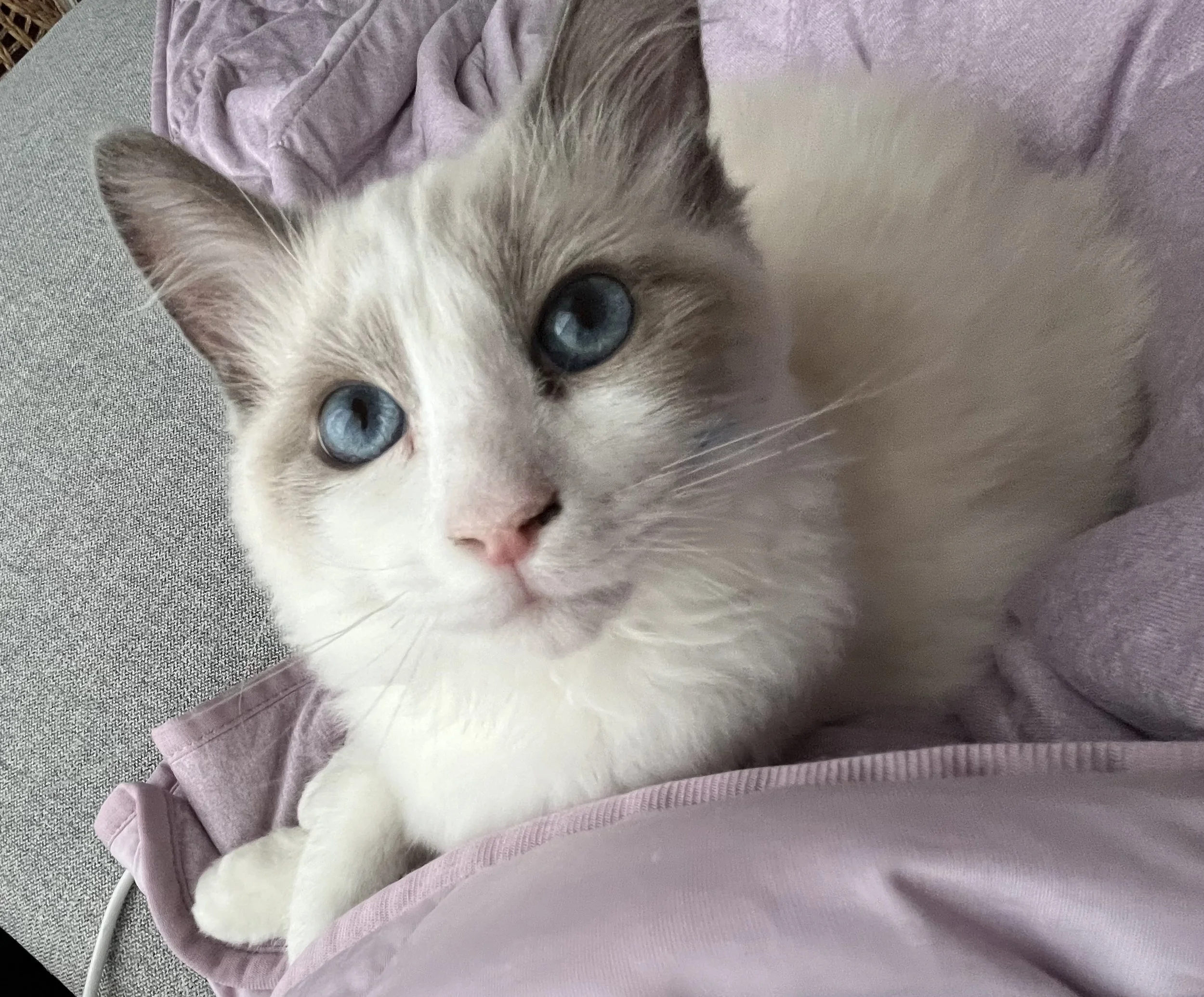 Master purrer, guardian of boxes, he loves conversations and sitting with you at the table. Always there to cuddle when you feel blue, very patient with godzilla-like toddlers, one could not ask for a better companion.